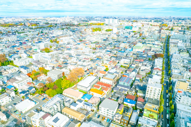 自治会広報誌で利用される、エリアの全体俯瞰図を撮影しました。 場所にもよりますが150m未満までドローンを飛行させることができます。 地域全体を俯瞰できる絵の撮影にぜひご活用ください。